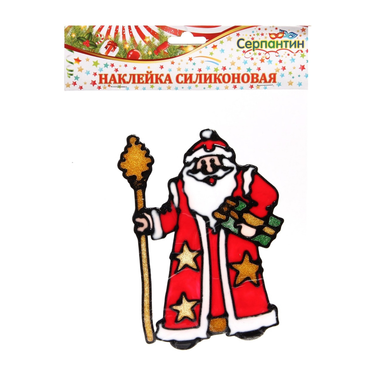 Наклейка на стекло 19*23 см,"Дед Мороз с посохом"