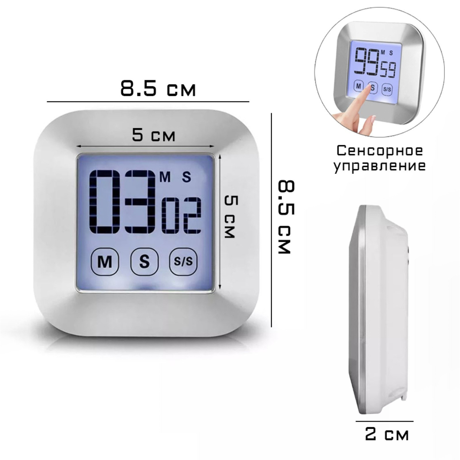 Часы обратного отсчета, на магните, сенсорное управление, 2АAA, 8.5 x 8.5 x 2 см   9021073