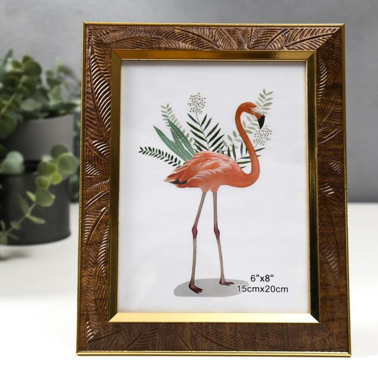 Фоторамка пластик 15х20 см "Листья на шоколаде, золотая двойная рамка" 24,7х19,8 см   5375934