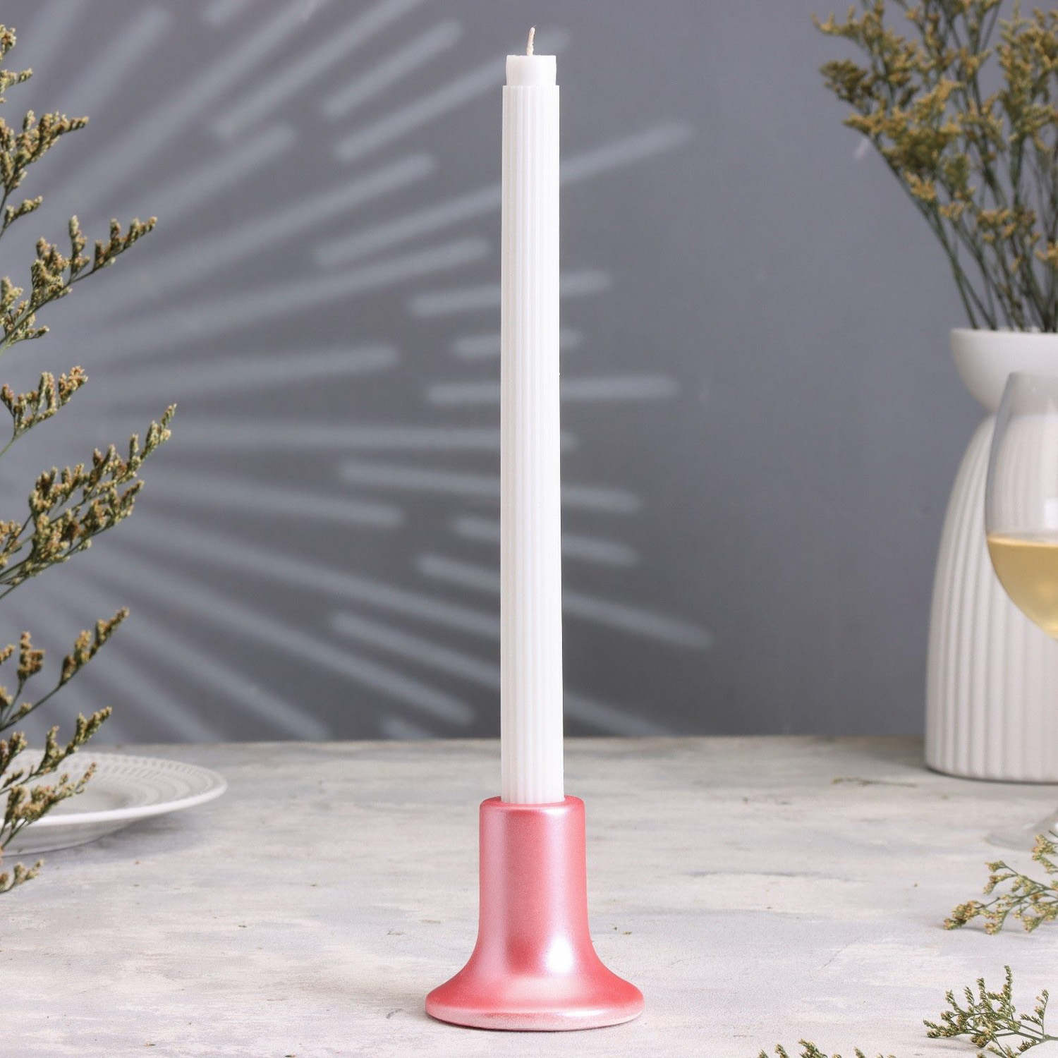 Подсвечник из гипса,7,5х7,5см,розовый 10059846