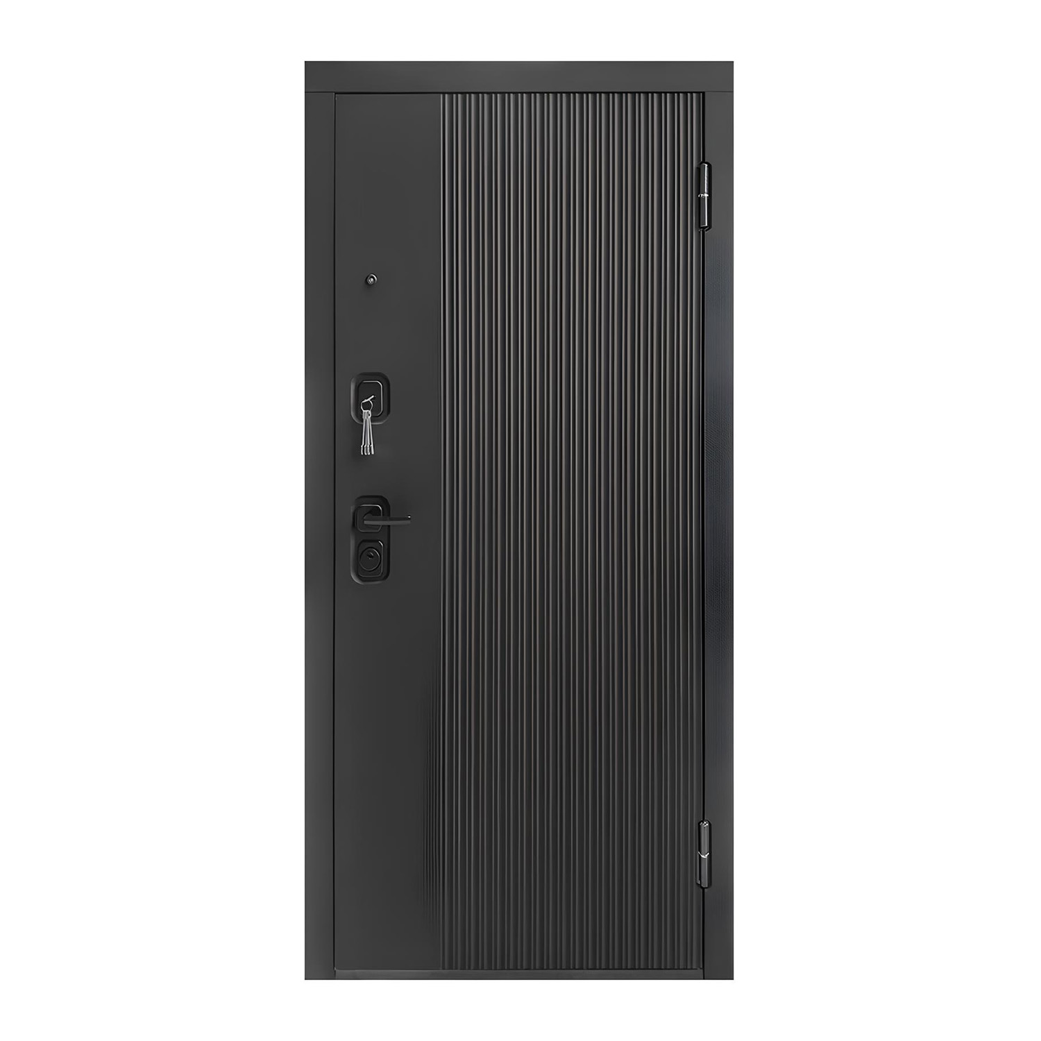 Дверное полотно, дверная коробка, замок основной, замок дополнительный, петли - 3 шт., ручки, наклад