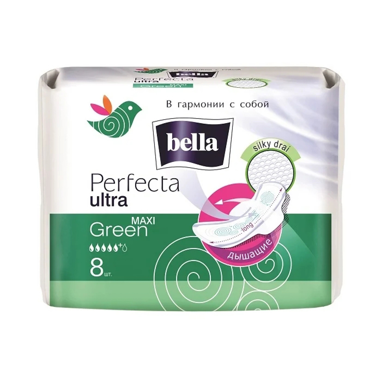 яяяПрокладки Белла гигиенические Перфекта/Ультра/Макси Грин 8шт. белая линия