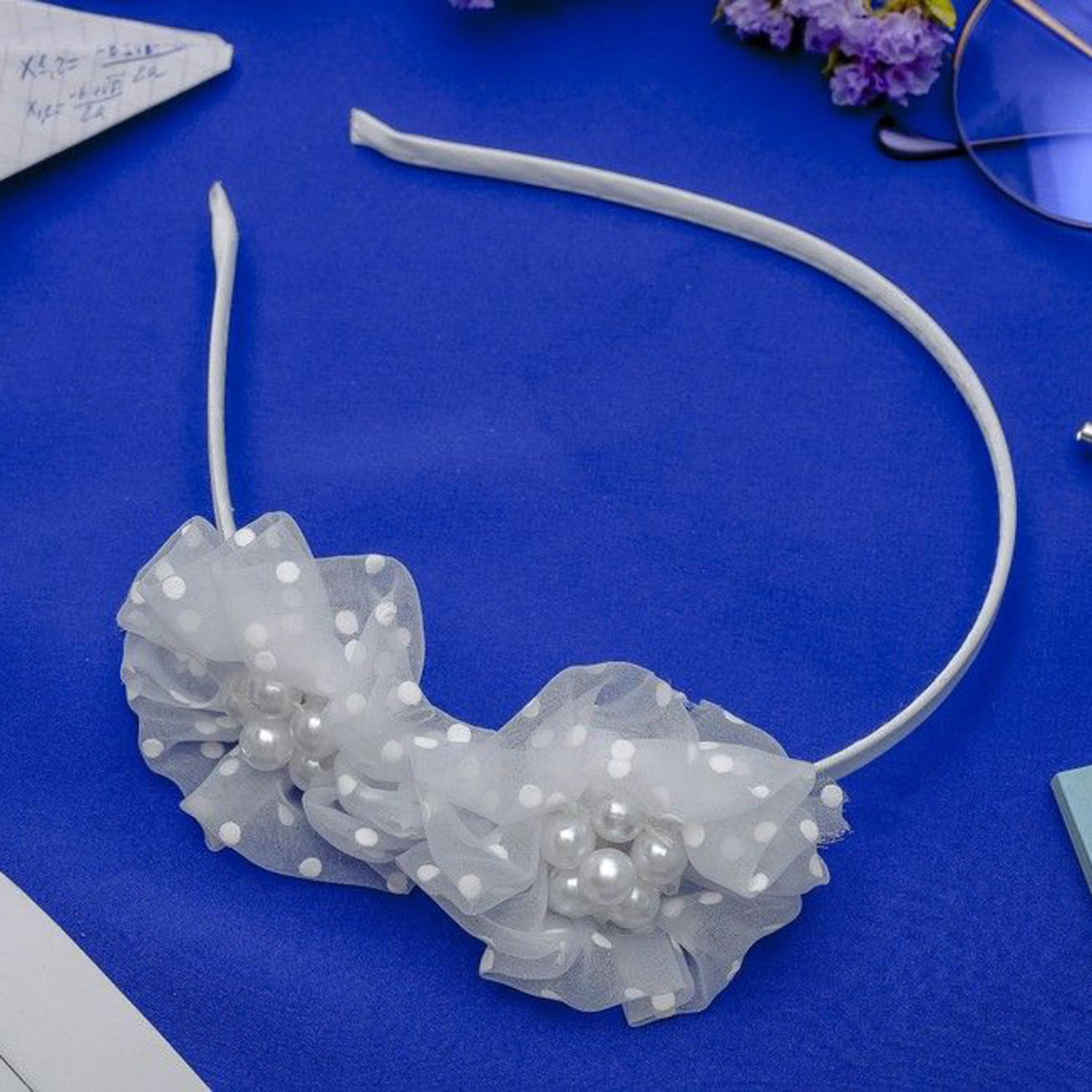 Ободок для волос "Школьница" 0,5 см, два цветочка, жемчужины 3522179