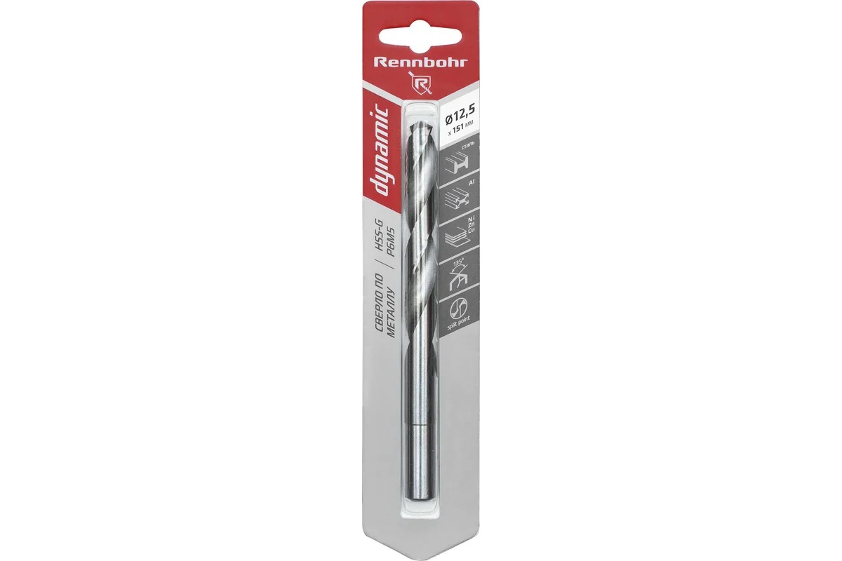 Сверло по металлу12,50*151/101мм HSS-G P6M5 (1шт) блистер арт.675125 DYNAMIC RENNBOHR *6/30/150