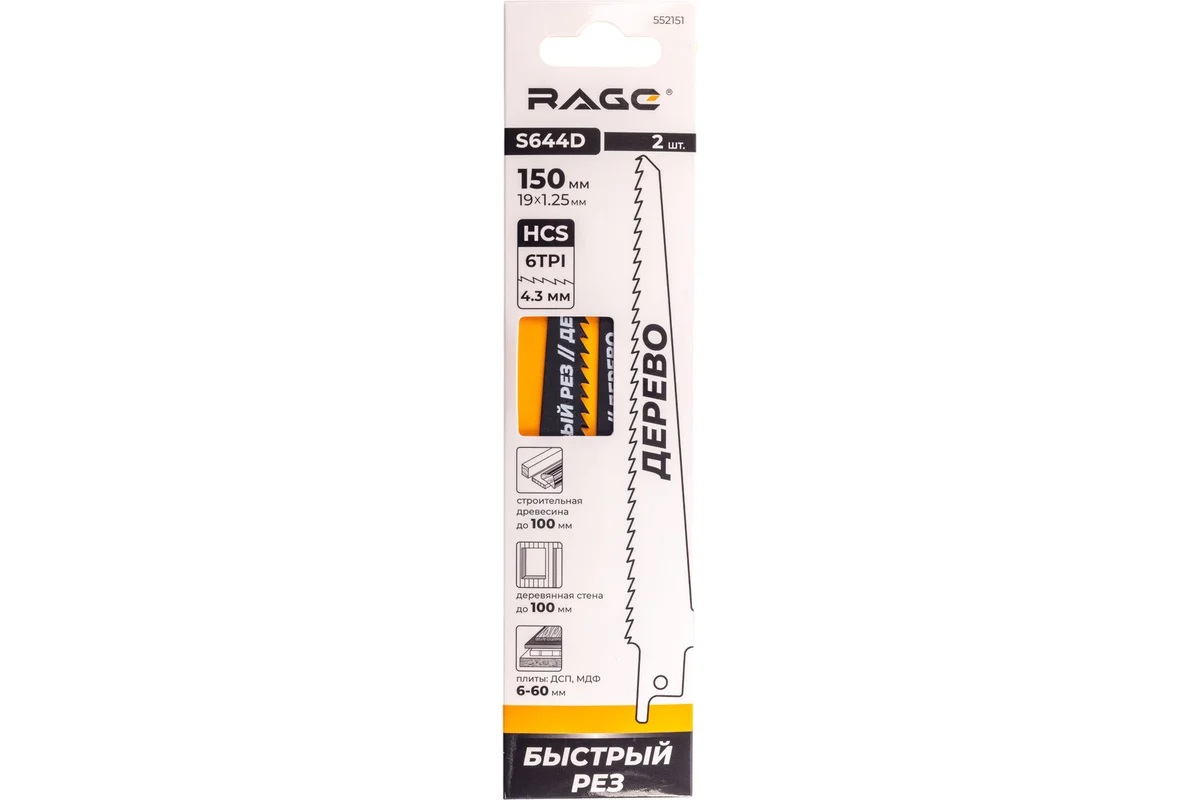Полотно д/сабельной пилы ДЕРЕВО 2шт 150/4,3мм быстрый рез S644D арт.552151 RAGE VIRA *10/100