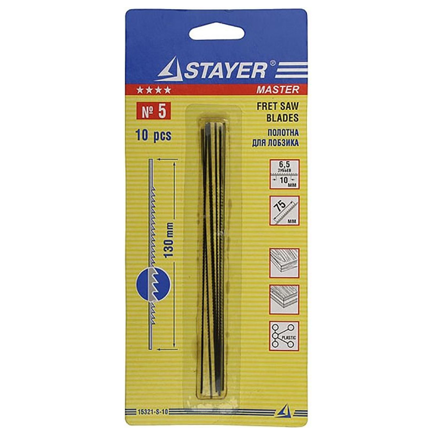 Полотна для ручного лобзика 130мм прямые 10шт №5 арт.15321-S-10 STAYER *1