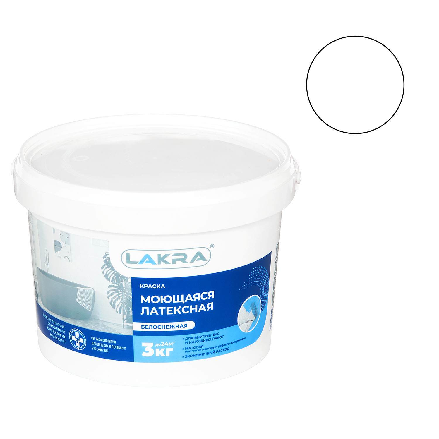 Краска латексная для стен и потолков 3 кг Лакра моющаяся Белоснежная *1/144