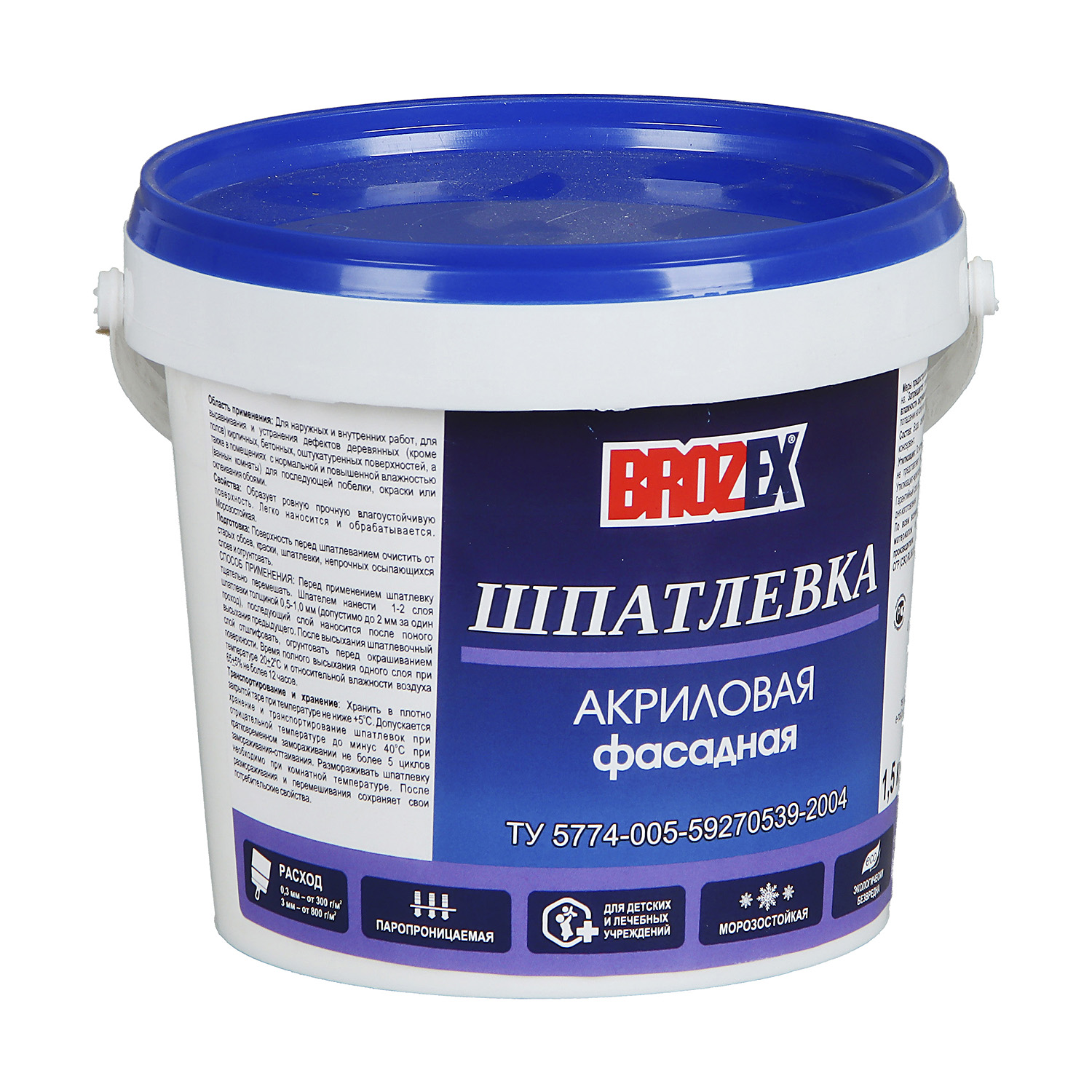 Шпатлевка акриловая фасадная 1,5 кг BROZEX *12/432
