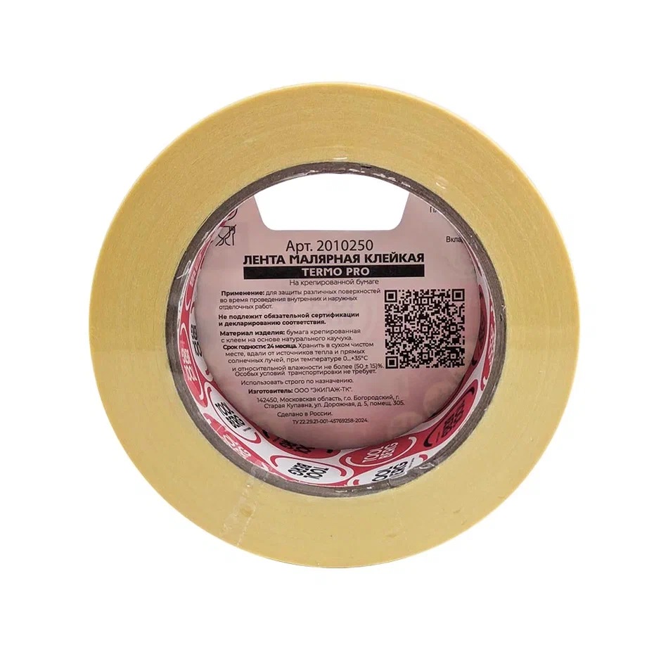 Лента клейкая малярная термостойкая "ТЕРМО PRO" 38мм х 50м арт.2010250 "TOOLBERG" *1/48