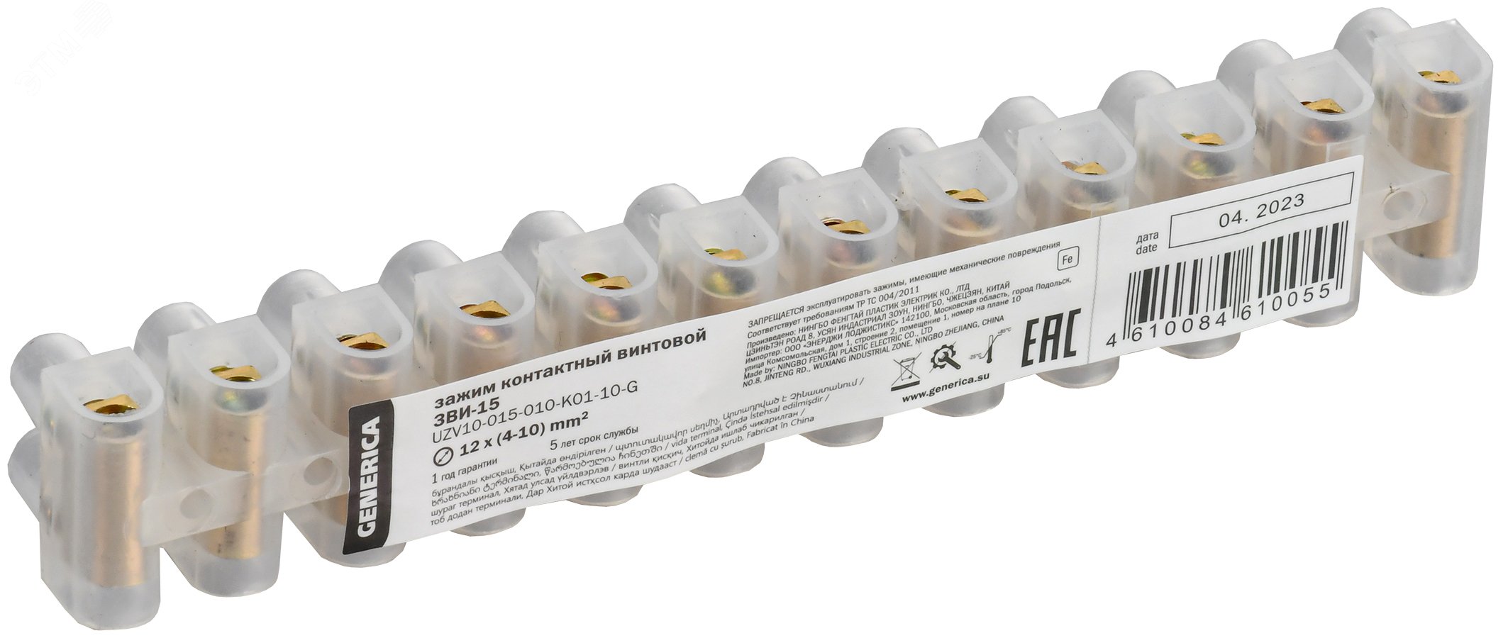 Колодка клемная ЗВИ-15 4-10мм2 (12пар) белый GENERICA IEK *10/500