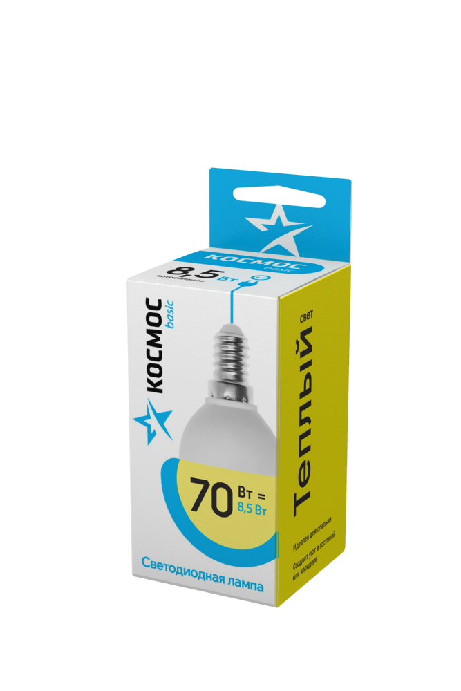 яяяЛампа светодиодная 8,5W Е14 шар 3К теплый GL45 Космос BASIC LED8,5wGL45E1430 *1/10/80