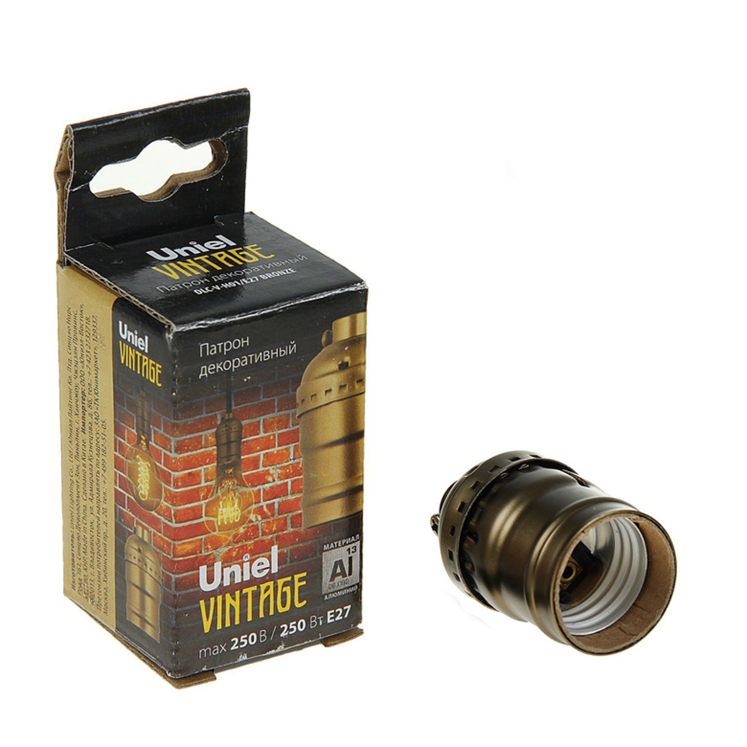 яяяПатрон декоративный Uniel Vintage, без выключателя, алюминий, цвет бронза 1677346