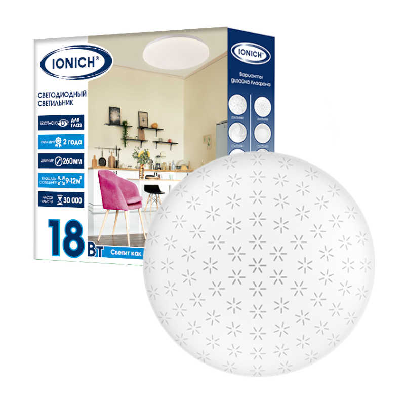Светильник светодиодный акриловый 260мм IONICH "Орион" эффект "Звездное небо" 18Вт 6000-6500К 1260Лм S=6-8м2 1715*1/40