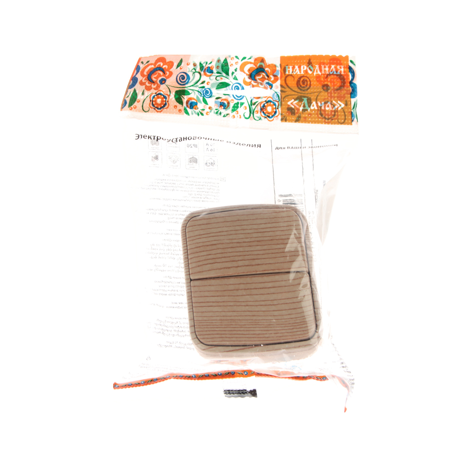 Выключатель Дача ОП 2кл. сосна 10А Народная SQ1824-0052