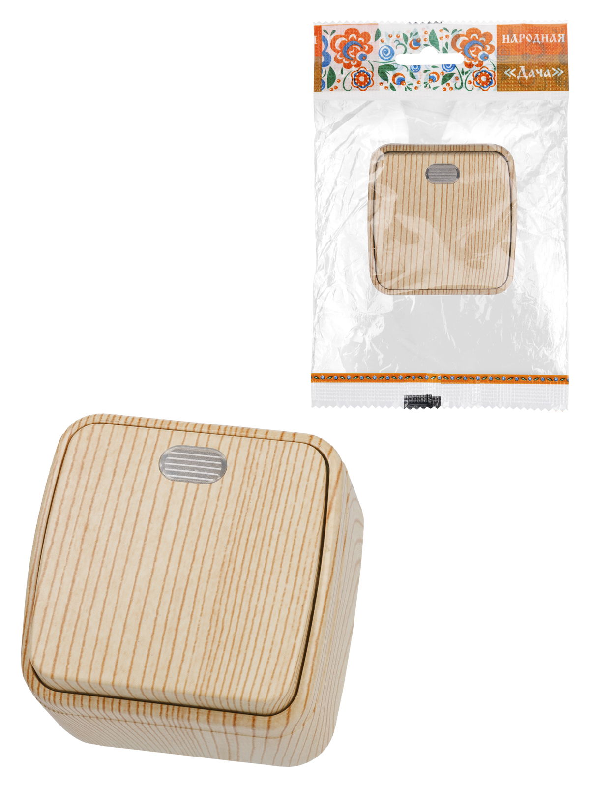 Выключатель Дача ОП 1кл. сосна с подсветкой 10А Народная SQ1824-0055