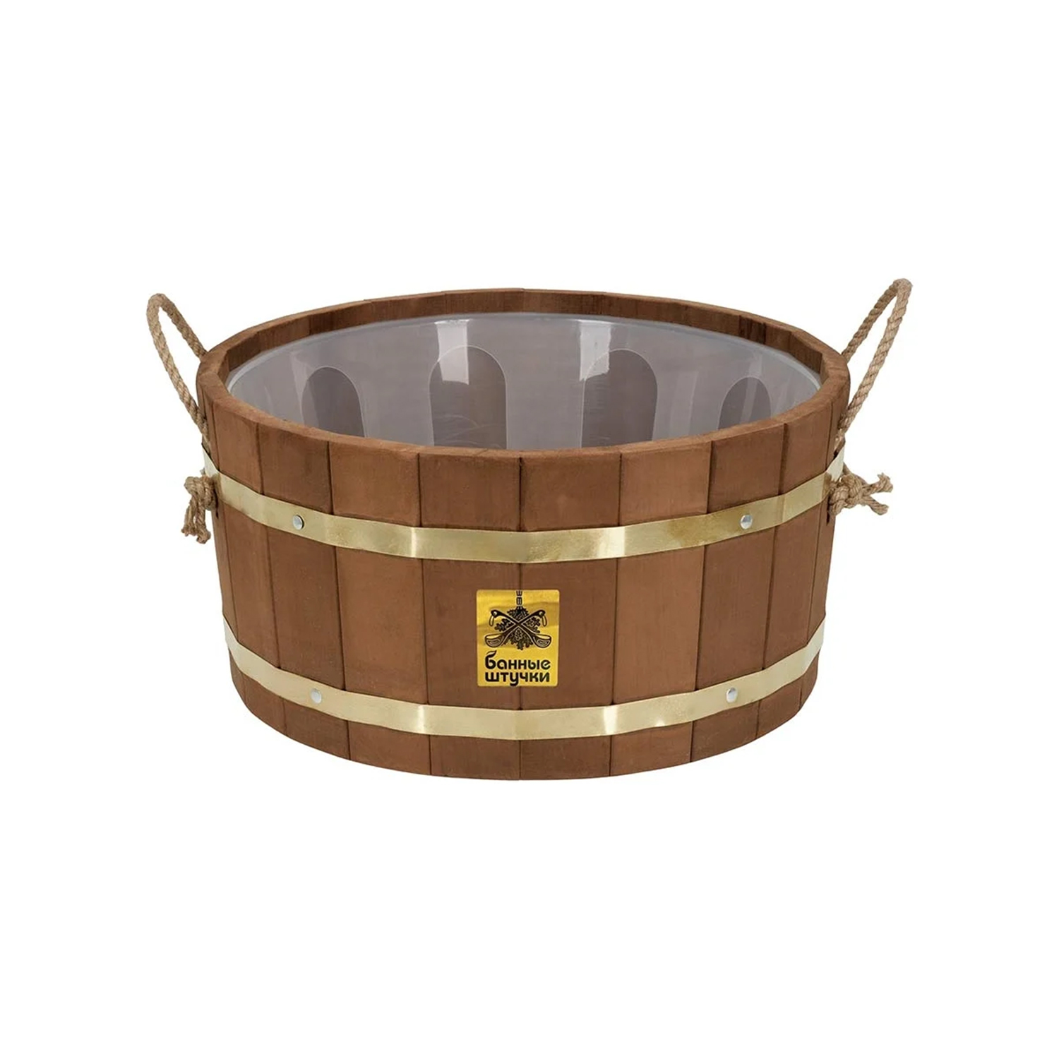 Ушат "шайка" 10 л (термо) с латунным обручем, пластиковой вставкой, липа, "Банные штучки" в кор./1