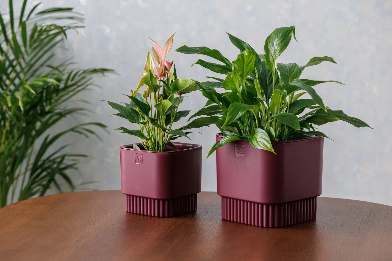 Кашпо пластм. "Бостон" 5,5л 192х192мм h185мм со вставкой Бордо АМБ-5,5-19 ("VipSet") *1/6