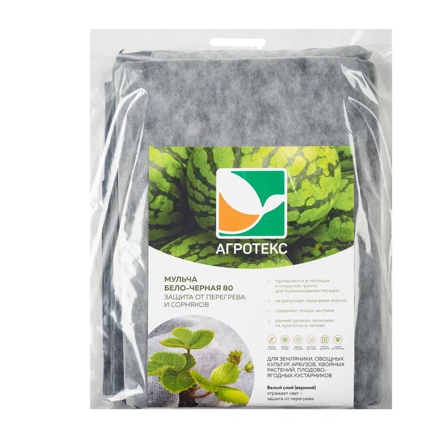 Укрывной материал 2-х слойный Агротекс защищает от перегрева и сорняков. Подходит для выращивания: земляники, овощных культур, арбузов, хвойных растений, плодово-ягодных кустарников. Позволяет получить ранний урожай, сэкономить на прополке, защитить плоды от соприкосновения с почвой.