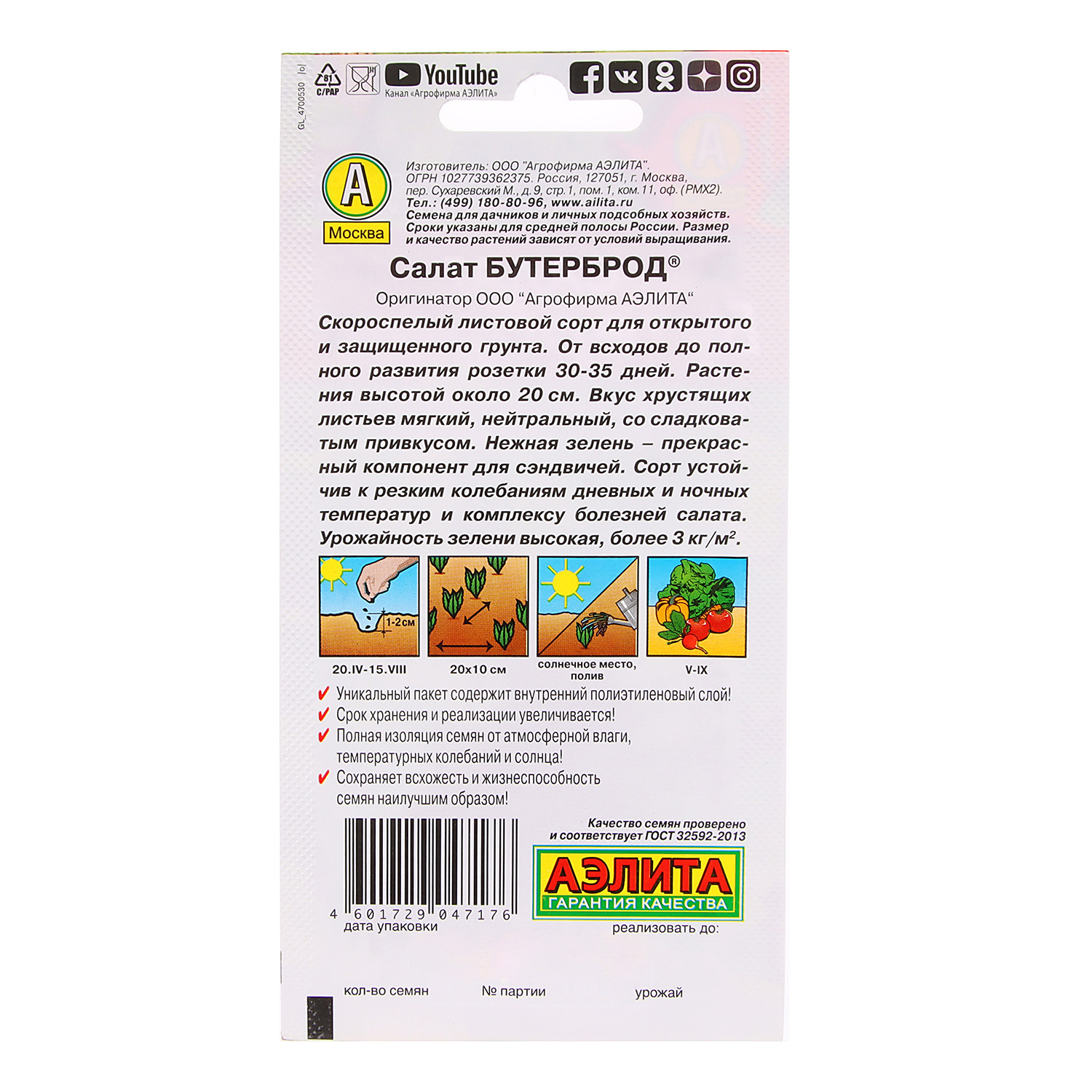 Семена Салат Бутерброд листовой 0,5гр Аэлита цв *10/500