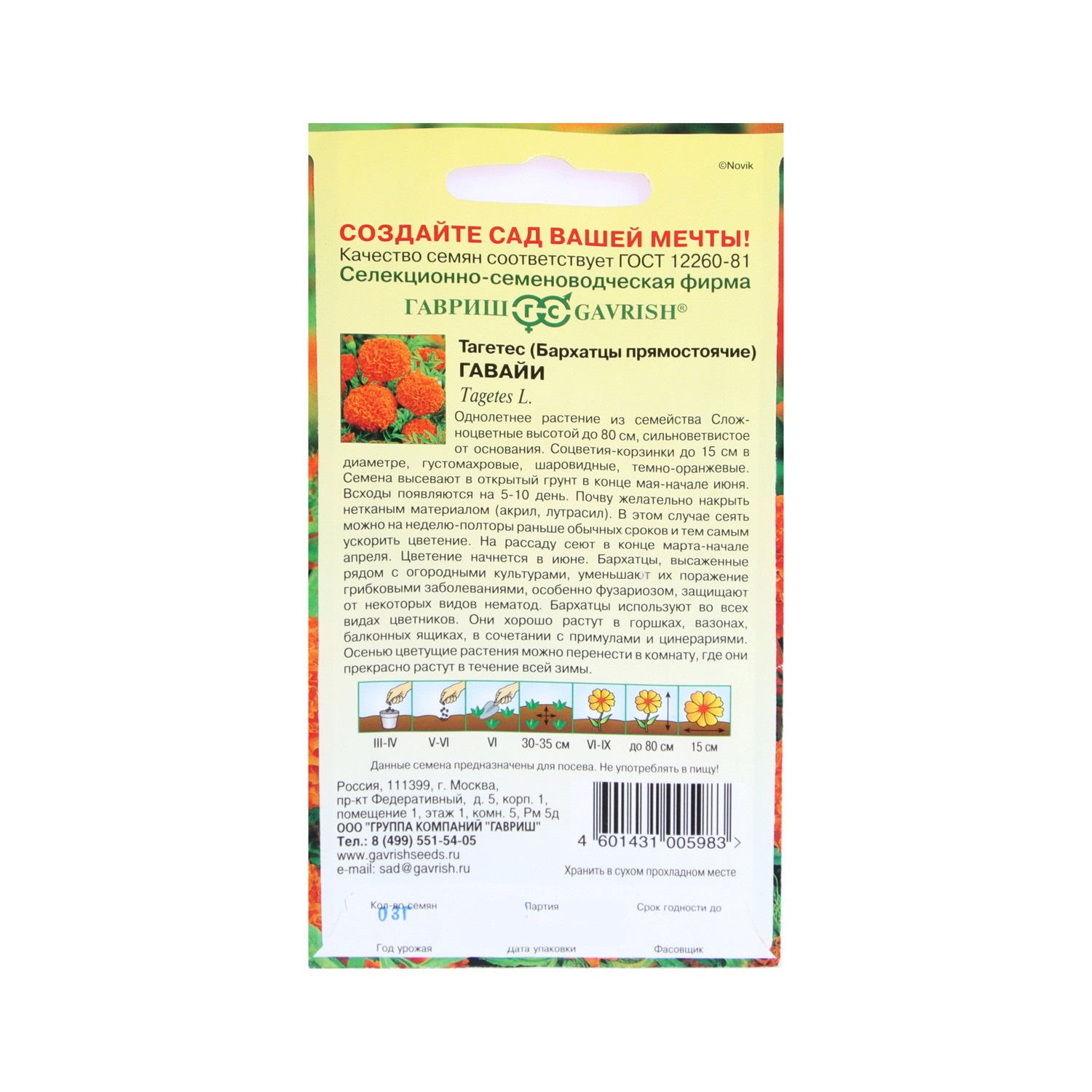 Семена Бархатцы Гавайи прямостоячие 0,3гр Гавриш *10/200
