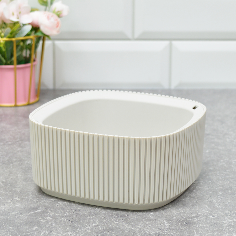 Кашпо пластм. "Стрип" 0,9л 165х165мм h75мм со вставкой Кремовый М3249 ("М-Пластика") *1/16