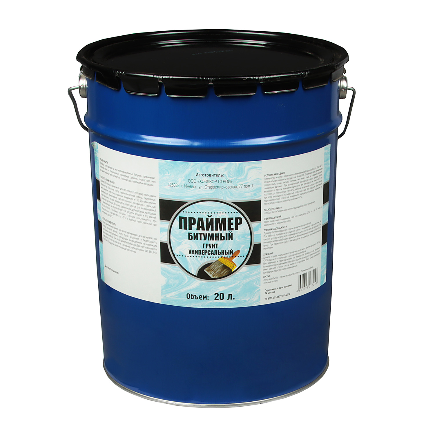 Праймер битумный ХозДвор изготавливаетсяиз высококачественных битумов, органических растворителей и специальных полимерных добавок, вследствие чего обладает высокой теплостойкостью, проникающей способностью и адгезией.