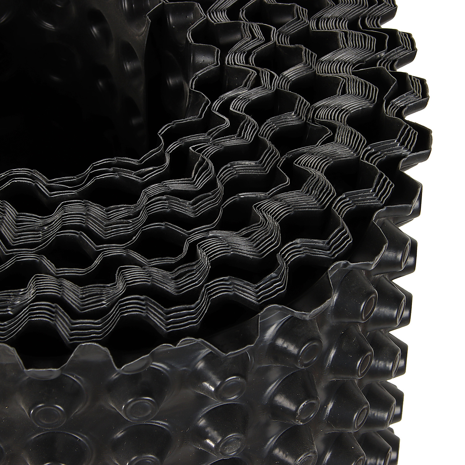 Профилированная мембрана PLASTGUARD Тип 400 — это полотно из полиэтилена высокой плотности (HDPE) с равномерно расположенными по всей площади выступами в форме усеченных конусов (высота выступа — 8 мм). Материал применяют для долговременной защиты гидроизоляции, устройства оснований под фундаменты и дренажа подземных частей зданий.