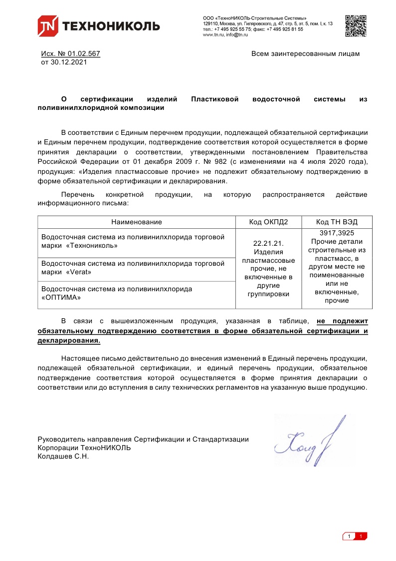 Слив трубы 80 мм ТехноНиколь, белый