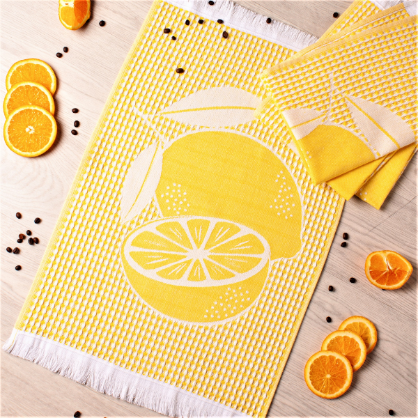 Полотенце вафельное жаккардовое 40*60см Лимоны желтый Casa Conforte *4