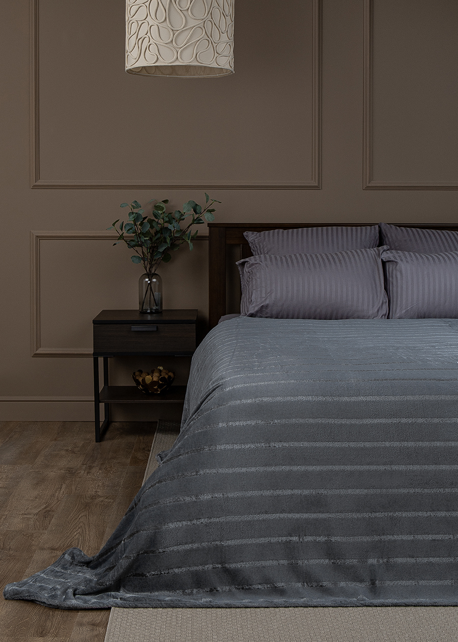Плед 150*200см фланель однотонный страйп темно-серый TF FNS GY3 1520 17-0000 Absolute *1