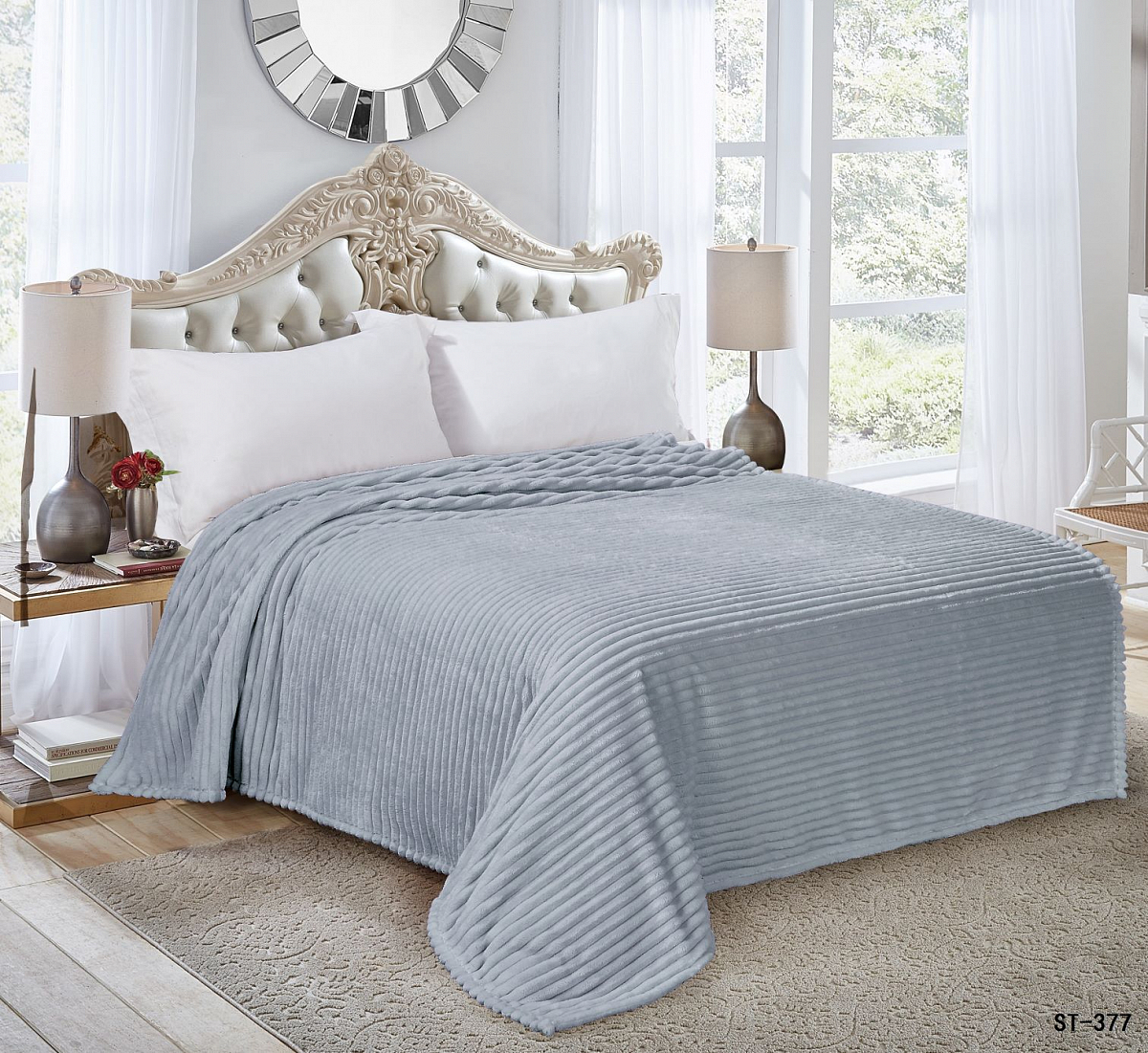 Плед 200*220см микрофибра жаккард полоска серый арт.377 NOVEL *1/8