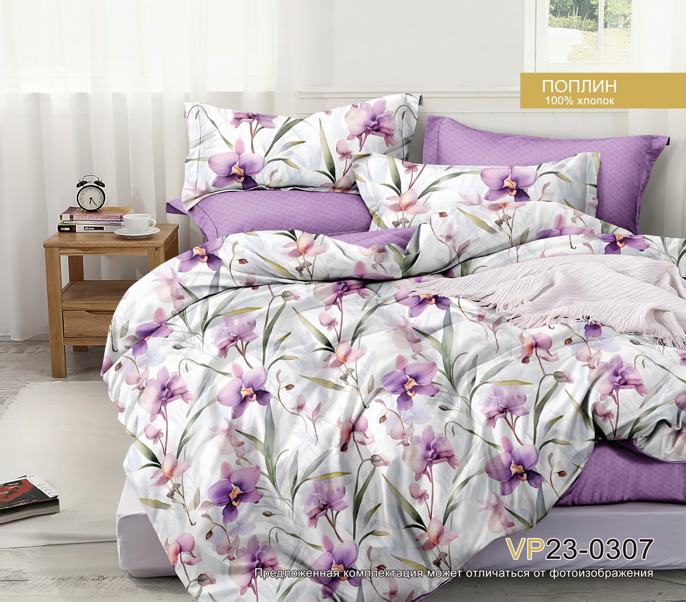 Постельное белье 2сп поплин на резинке Орхидея VP23-0307, наволочки 70*70 - 2шт *1/4