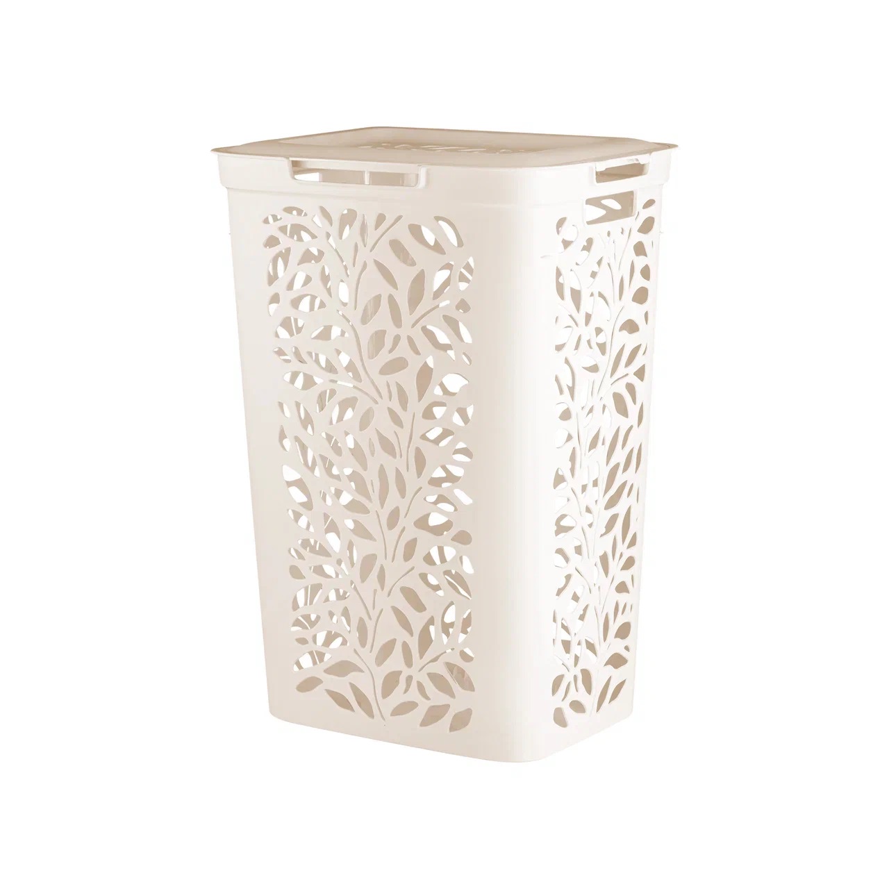 Корзина для белья пластм. 60л "Leaves" 440x340x635мм Молочный 48907 ("Плимербыт") *1/4