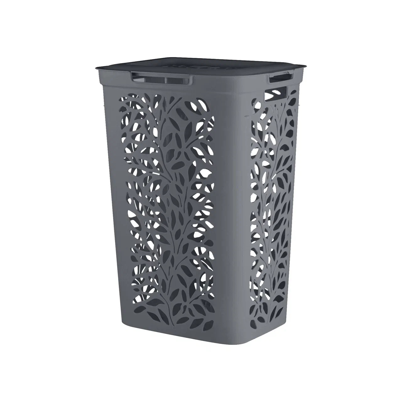 Корзина для белья пластм. 60л "Leaves" 440x340x635мм Серый 48925 ("Плимербыт") *1/4