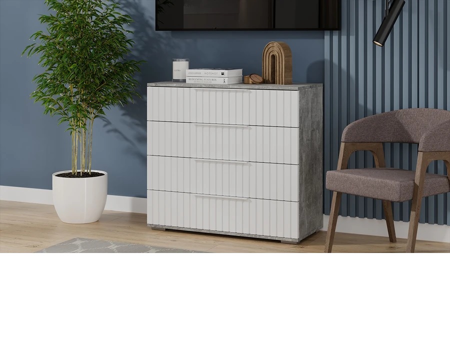 Комод 920*414*842мм 4 ящика Ателье светлый/белый матовый Хилтон ТриЯ*1