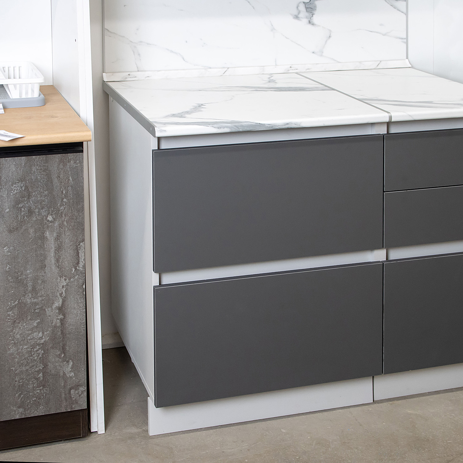 Шкаф напольный 600х850х600 мм BROZEX-WOOD Серый лед, с двумя ящиками, серый / графит