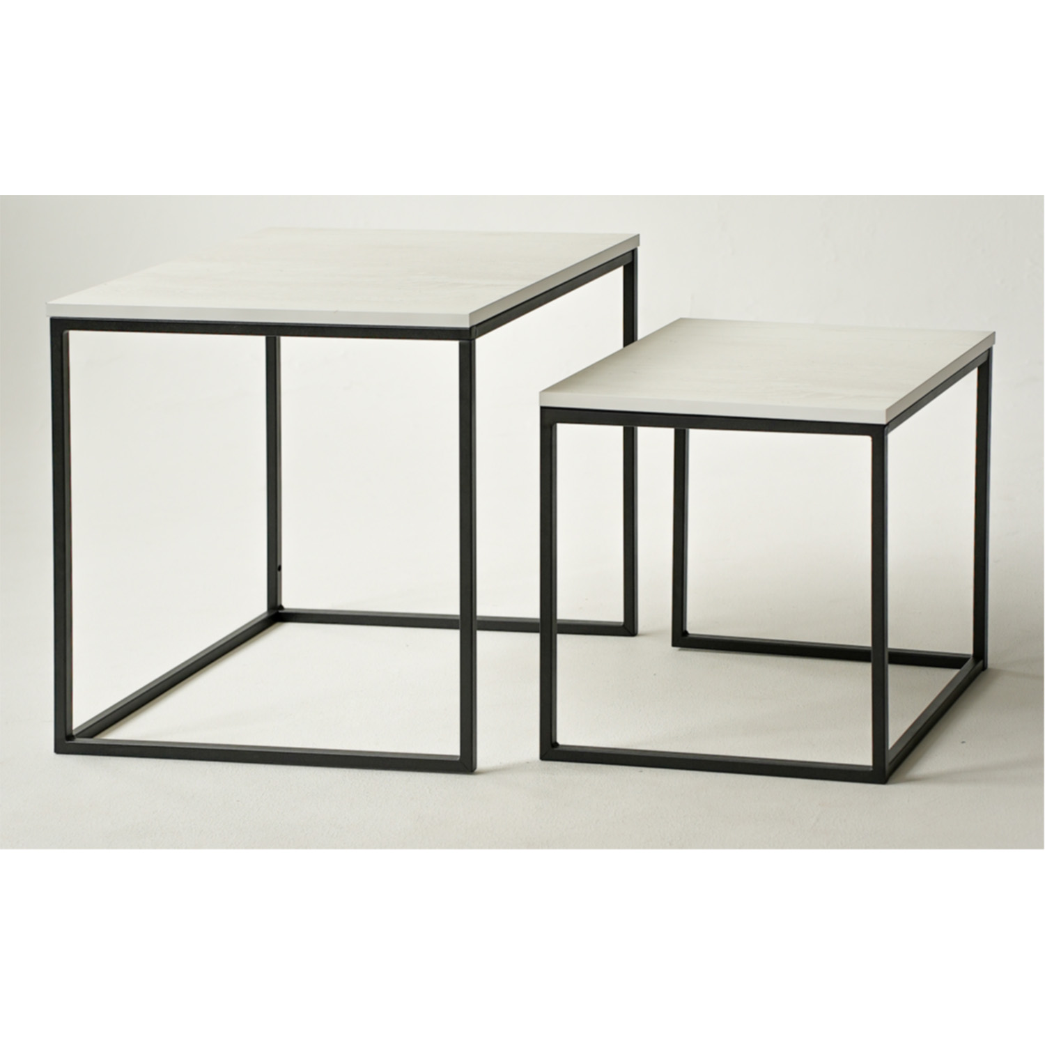 Столик журнальный МАТРЕШКА КВАДРАТ комплект столешниц 2 шт.БЕТОН пайн светлый+каркас черный*1