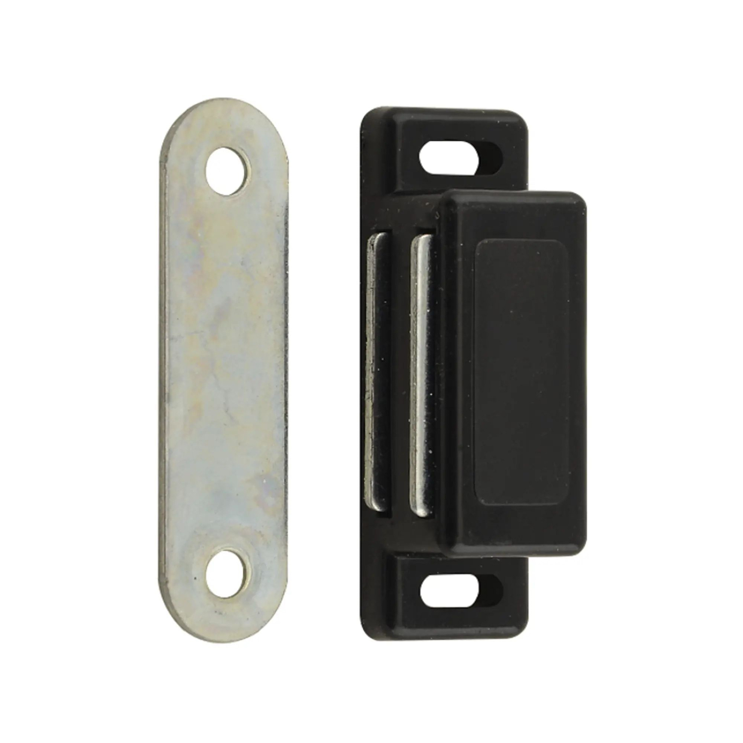 Магнитная защелка - это вид мебельной фурнитуры, который используется для фиксирования мебельных створок в закрытом положении. Работает за счет притяжения магнитных вставок в основании защелки и ответной части.Корпус защелки выполнен из пластика, покрытие - краска.