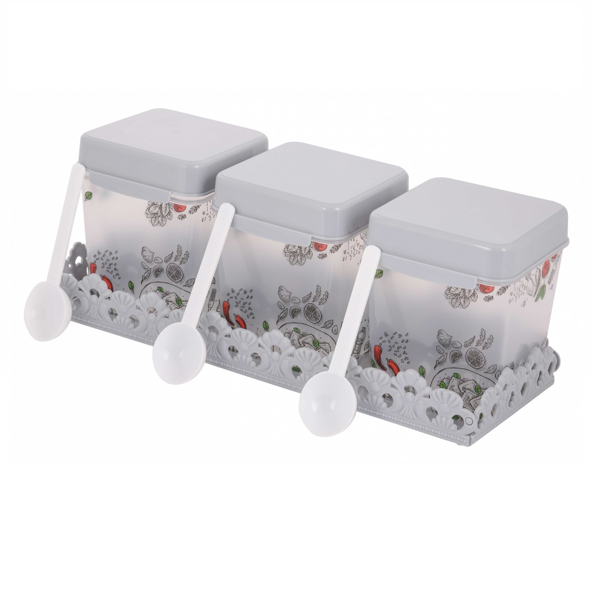 Набор емкостей для сыпучих прод. пластм. 3х 1,2л "Пронто" на подставке+ложечки М7797 (Окт-й)
