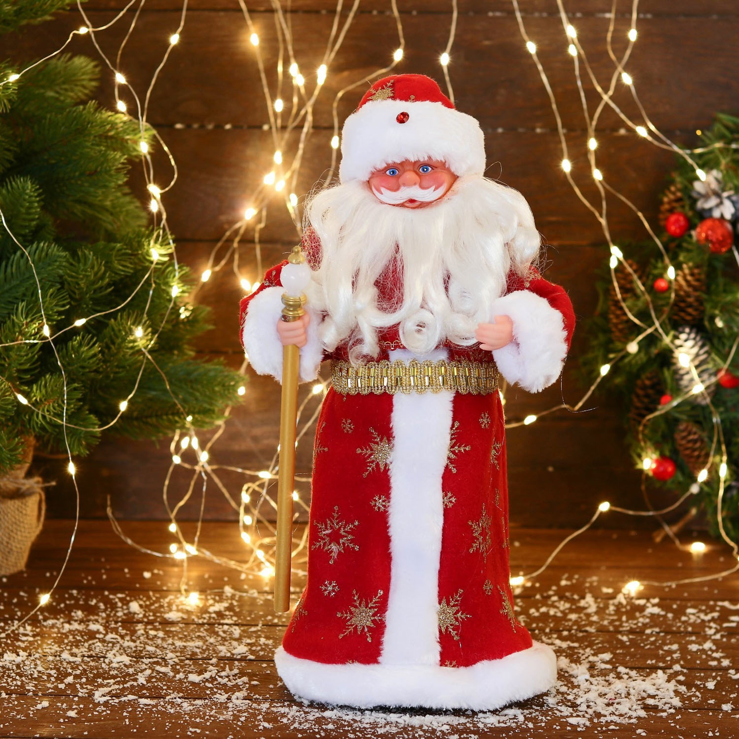 Дед Мороз "Красная шуба, с посохом" 39 см, двигается, красный 1111419