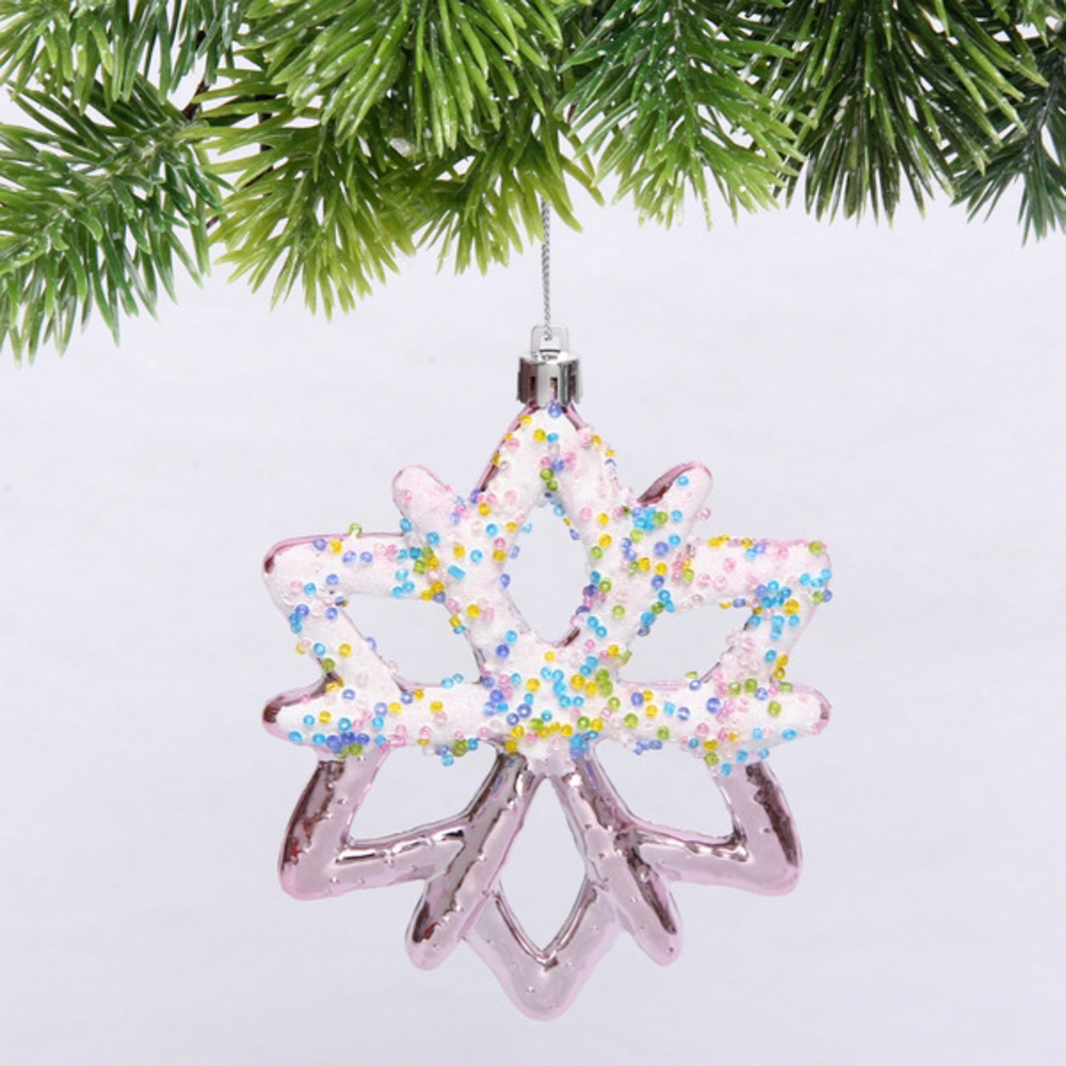 Елочная игрушка "Зимняя снежинка" 10*1*12 см, розовый