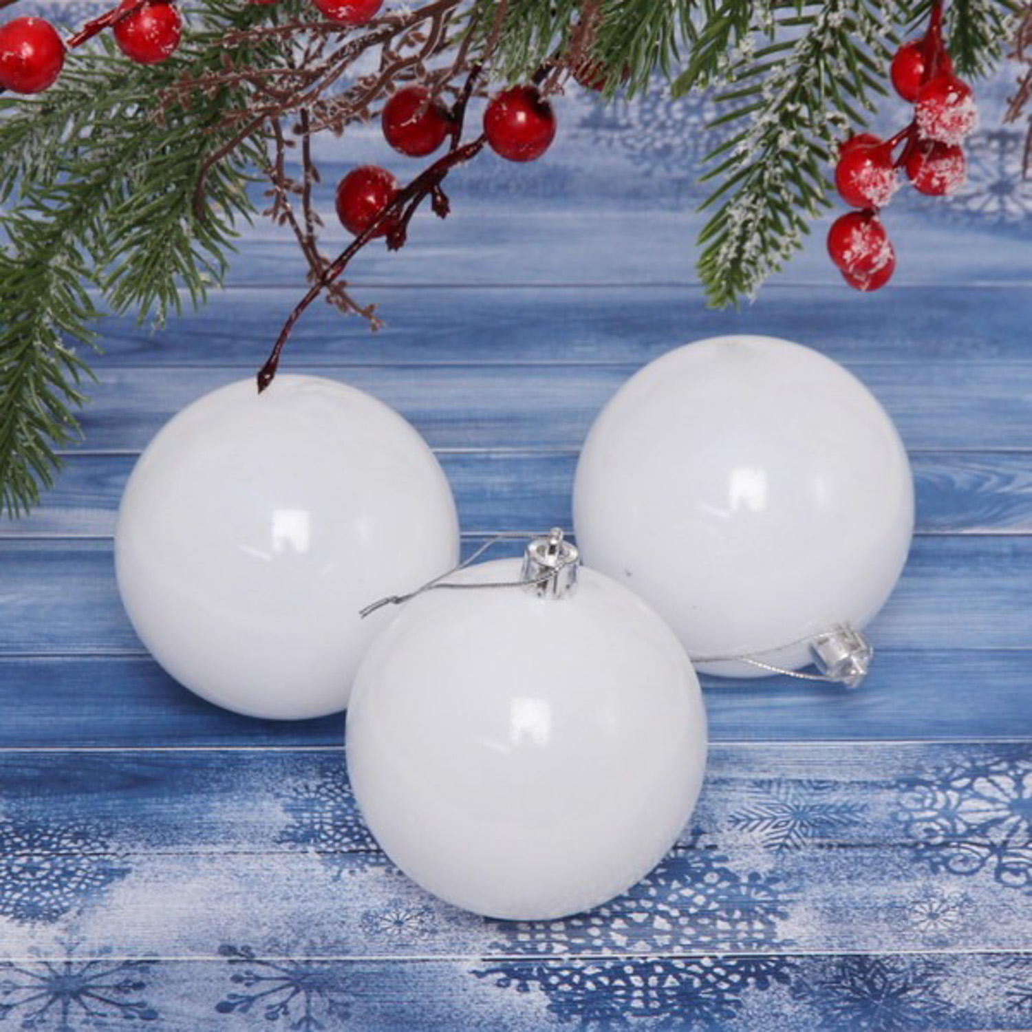 Новогодние шары 8 см (набор 3 шт) "Глянец", белый