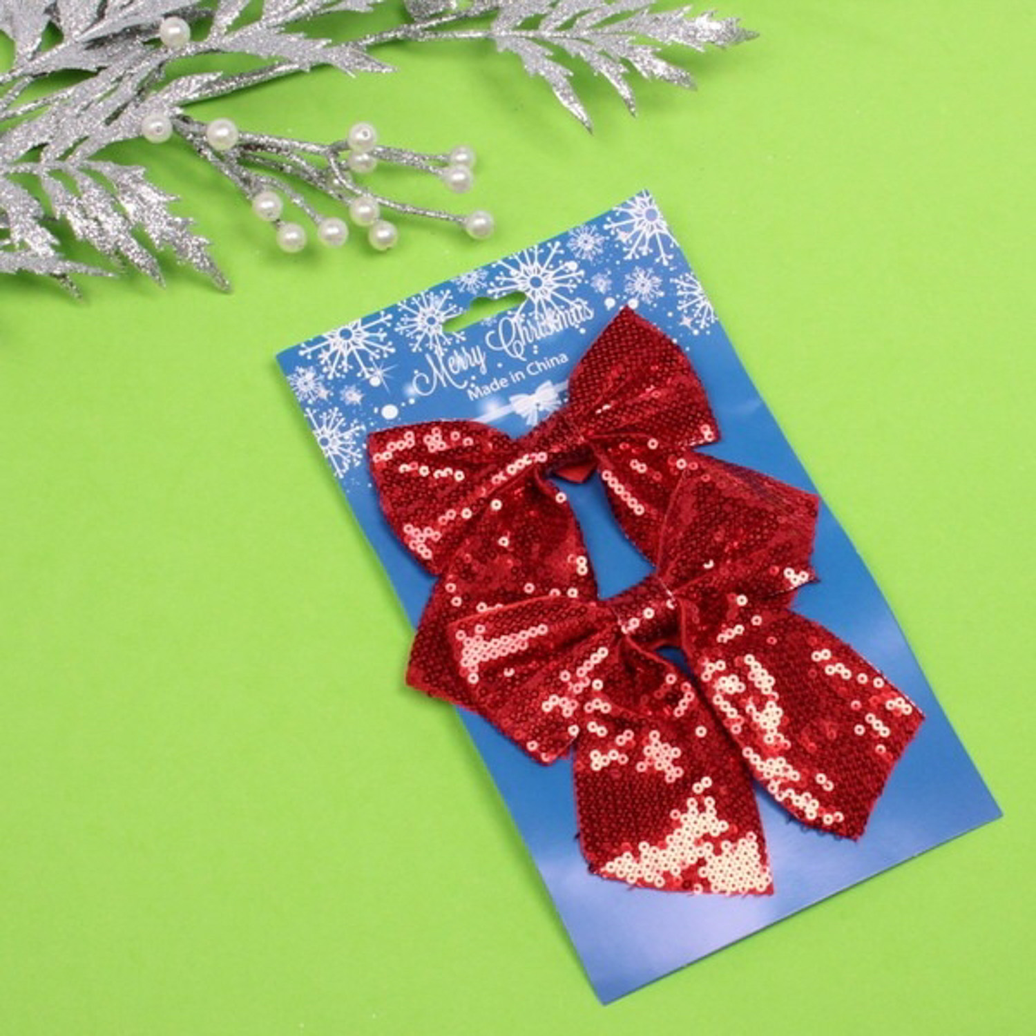 Набор бантов на елку Серпантин «Красный блеск», 14 cм, 2 шт., красный