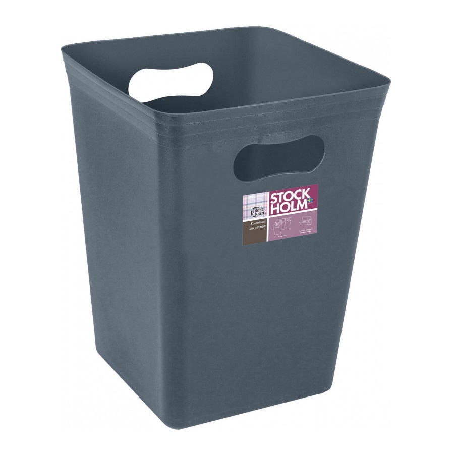 Контейнер д/мусора пластм. без крышки 15л "Stockholm" Вулкан.базальт PT658111026 ("Plast Team") *1/8
