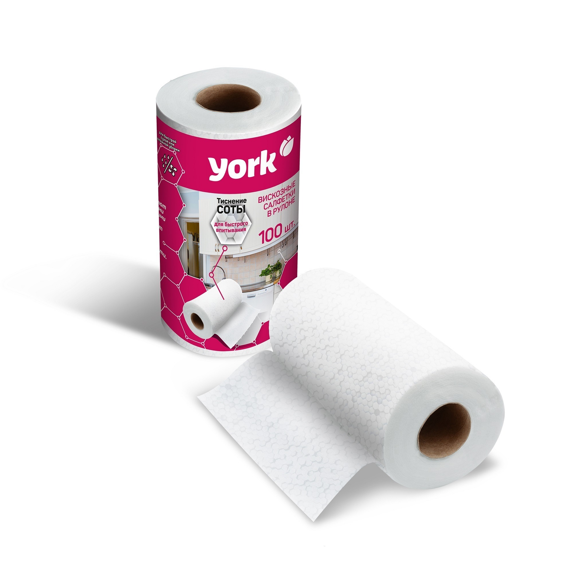 Салфетки для уборки в Рулоне 25х22,5см 100шт с тиснением "соты" 020430 "York" *1/18