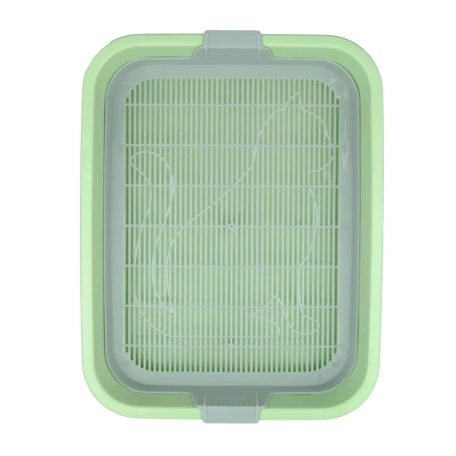 Лоток-"туалет для кошек" пластм. с выс.бортами 519х378х213мм съем.Решет.+Совок Зелен. арт.96203 *1/4