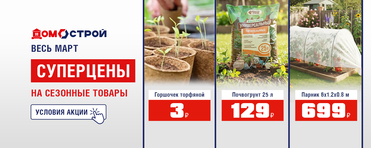 Только до 31 марта в ДомоСтрой суперцены на сезонные товары для дачи и сада! Успейте заказать на сайте или приобрести в магазине.