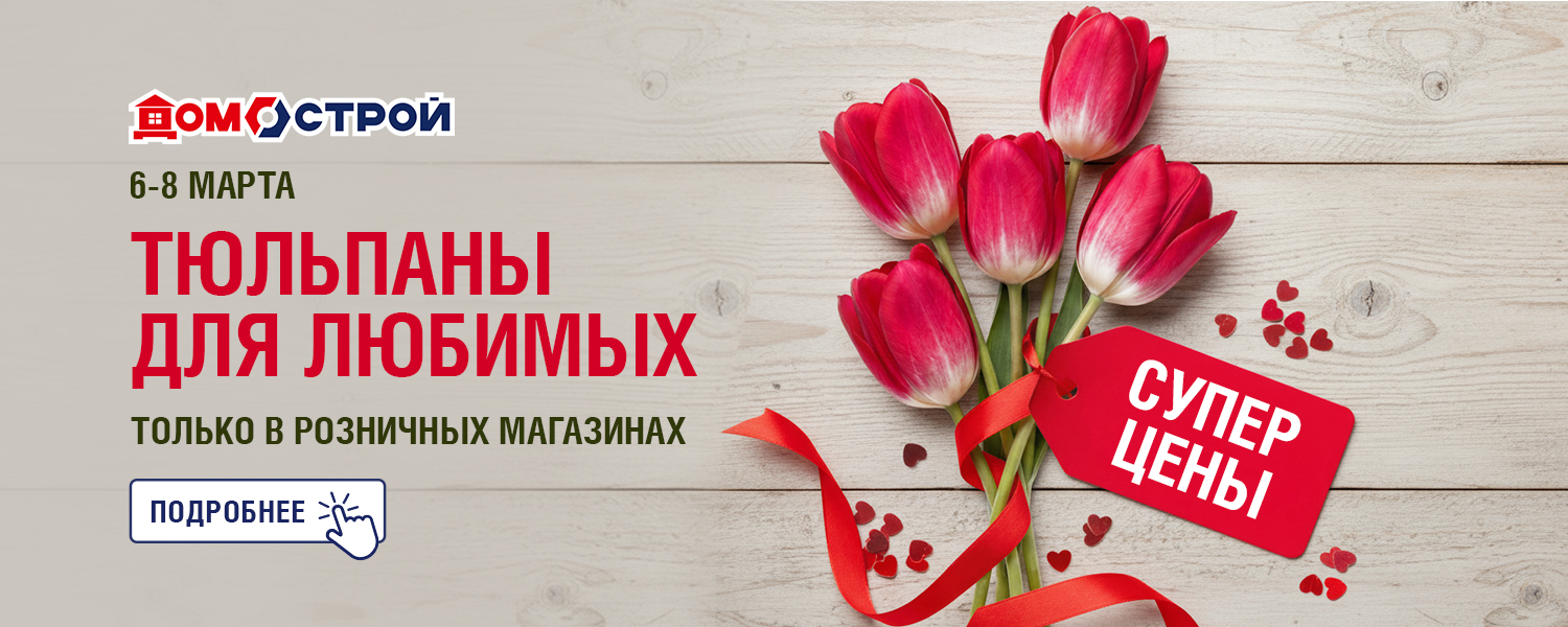 Акция действует 6-8 марта 2026 г. только в розничном магазине ДомоСтрой г. Реж и Камышлов. Количество товаров по акционной цене ограничено. Акция не суммируется с промокодами и другими акциями (в том числе со скидками по дисконтной карте, скидкой для пенсионеров и акцией для новоселов). Подробности уточняйте у продавцов-консультантов или операторов интернет-магазина по телефону горячей линии.